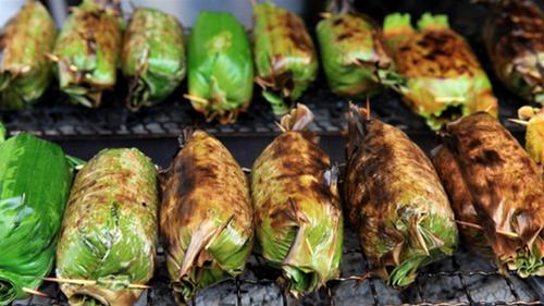 ngậy của chuối bọc nếp nướng đã kích thích cái vị giác, khứu giác nhanh