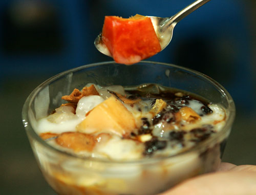 Kể cả trái cây miền Nam cũng được sử dụng rất nhiều như bơ hay mãng cầu. Ngoài ra còn có nho - loại quả "hơi sang" nữa. Trộn cùng hoa quả là sữa tươi, sữa đặc để giảm bớt vị chua của trái cây và thêm đậm đà cho món ăn.