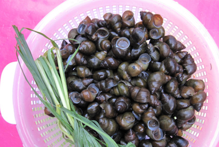 ốc xoắn nhặt (tương tự như ốc gạo) thường xuất hiện quanh năm nơi các
